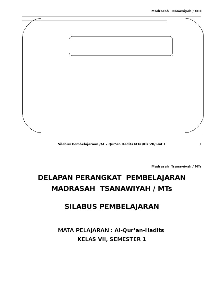 Silabus qur'an hadis kelas vii mts. Hajar dewantoro 25 november 2016 6. Terima kasih dan selamat berpartisipasi! Salah satunya adalah silabus al quran hadits kelas 7 mts kurikulum 2013 revisi terbaru. Rpp, silabus qur'an hadis kelas 7, 8 dan 9 kurikulum 2013 s ilabus pada i mplementasi k urikulum 2013 merupakan a cuan dalam p enyusunan kerangka pembelajaran untuk setiap bahan kajian mata pelajaran.